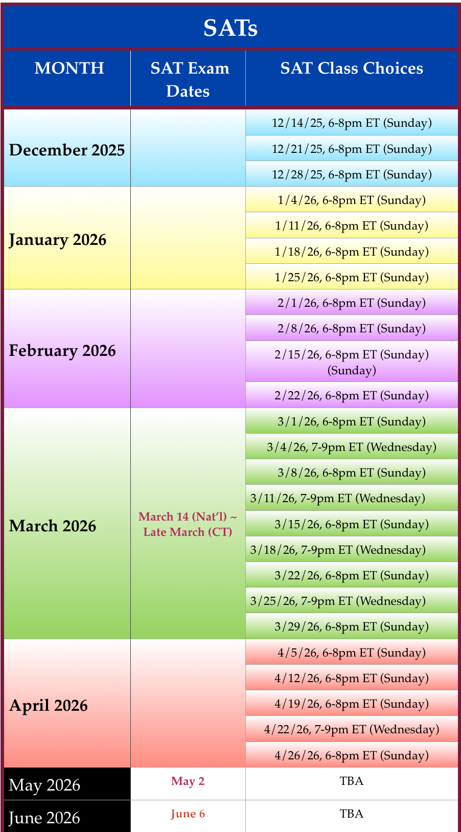 Be sure to check out our new “design your own class schedule” SAT prep course with Dr. Yo! 20 classes on Sundays and Wednesday nights from which to choose to prepare for the March SATs are now open for registration!